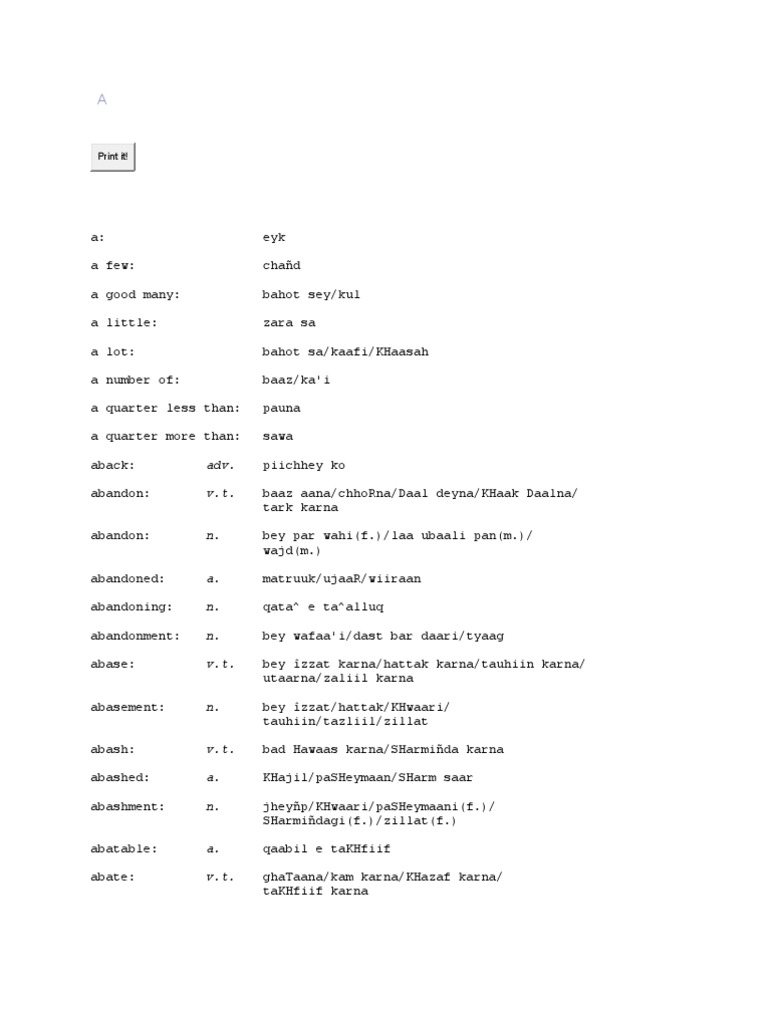 Urdu English Hindi Dictionary - Auliya allah kay alfaz ki taseer download.
