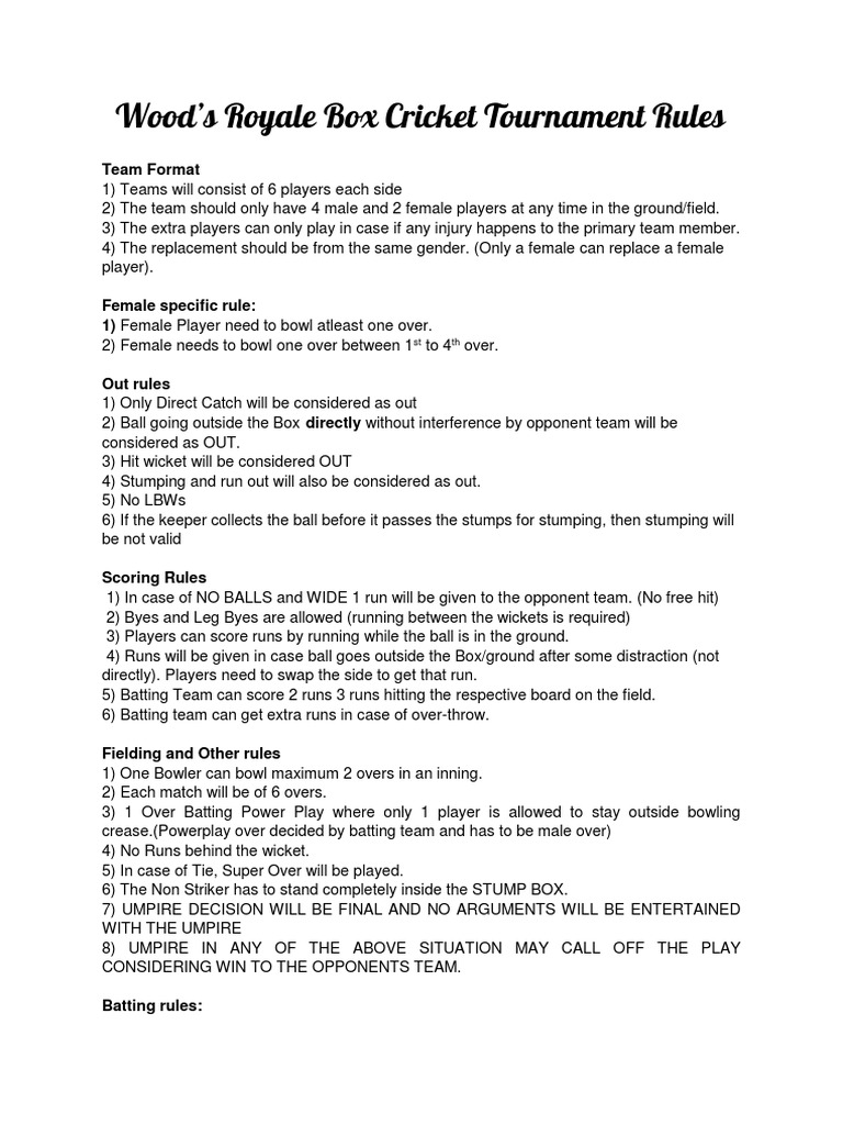 Box Cricket Rules Docx Bowling Cricket Forms Of Cricket - Explanation of the rules of r/cricket.